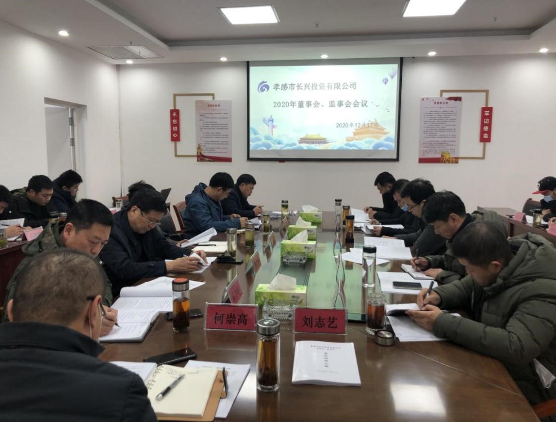 2020年12月17日下午,孝感市長興投資有限公司召開了董事會、監(jiān)事會。公司董事長胡格峰主持會議,公司各董事、監(jiān)事及高管共同參加會議,本次會議應(yīng)到董事13人,實到董事11人,應(yīng)到監(jiān)事10人,實到監(jiān)事10人,符合法律程序。